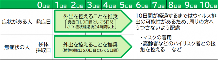 ※2 こうした期間にやむを得ず外出する場合でも、症状がないことを確認し、マスク着用等を徹底してください。